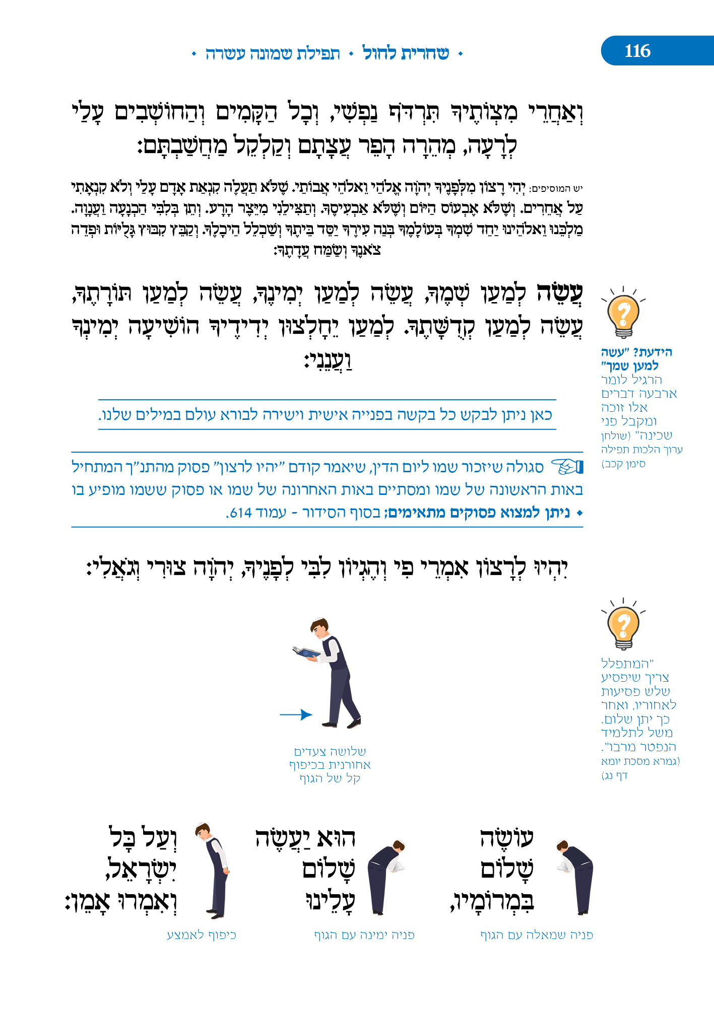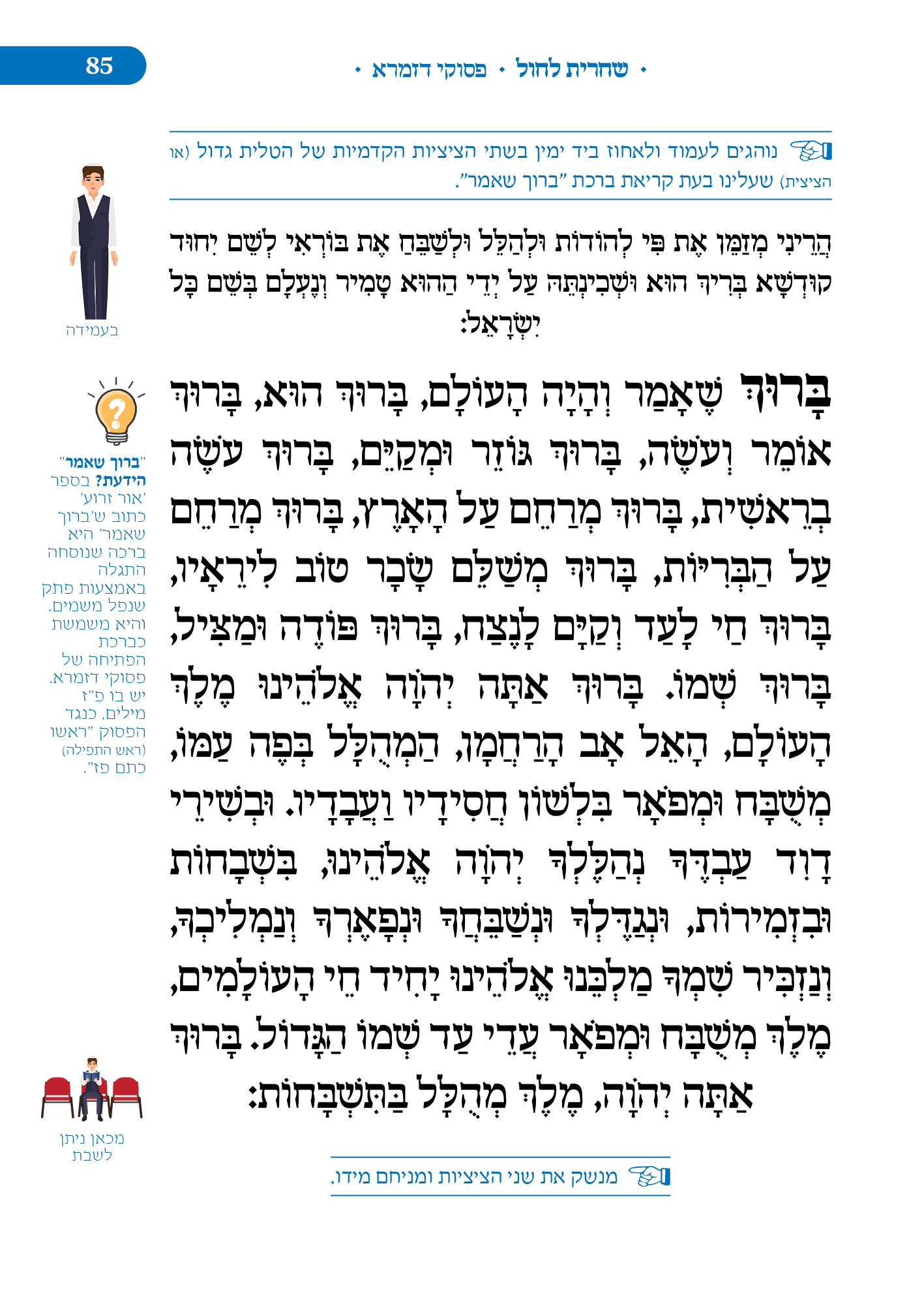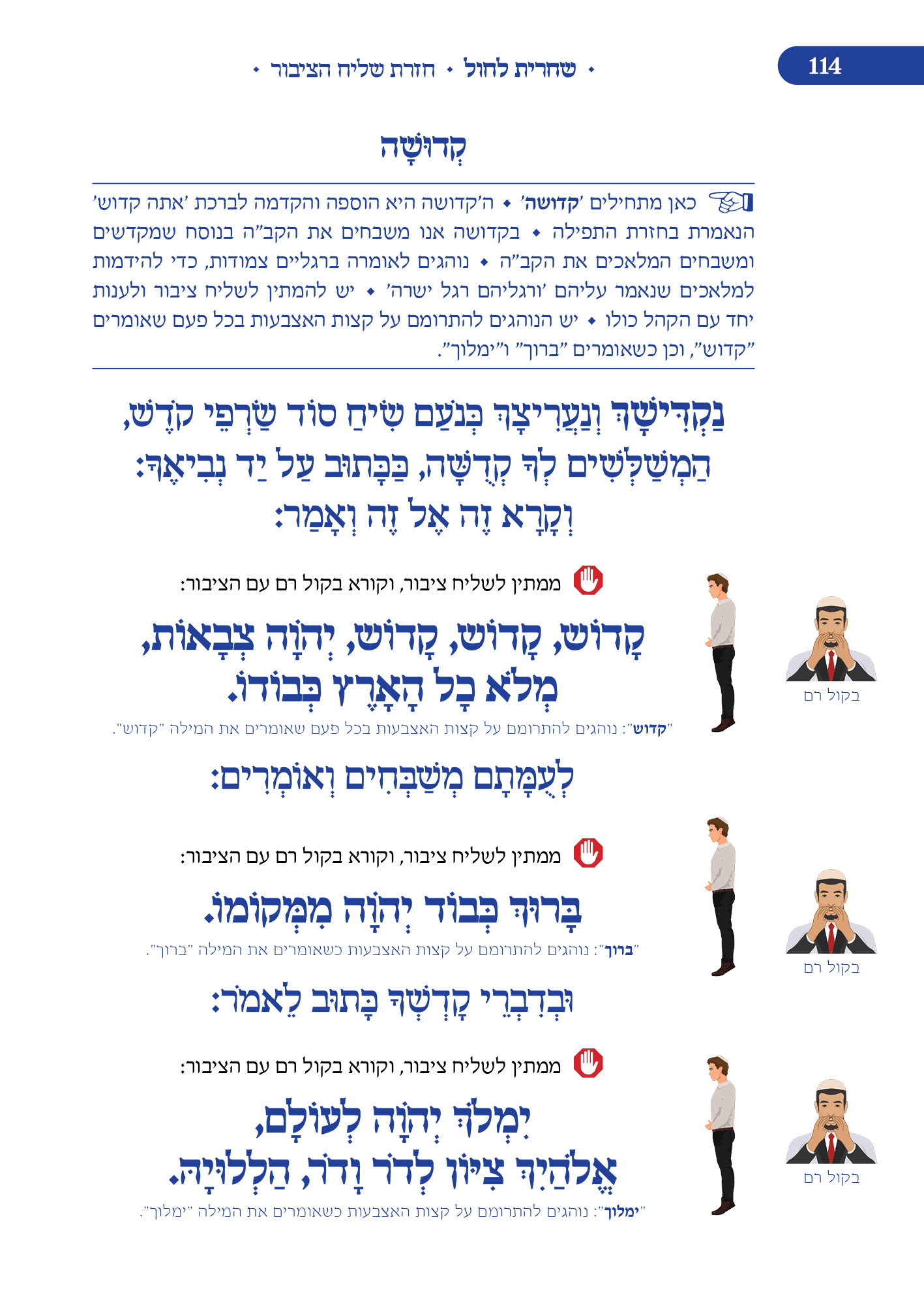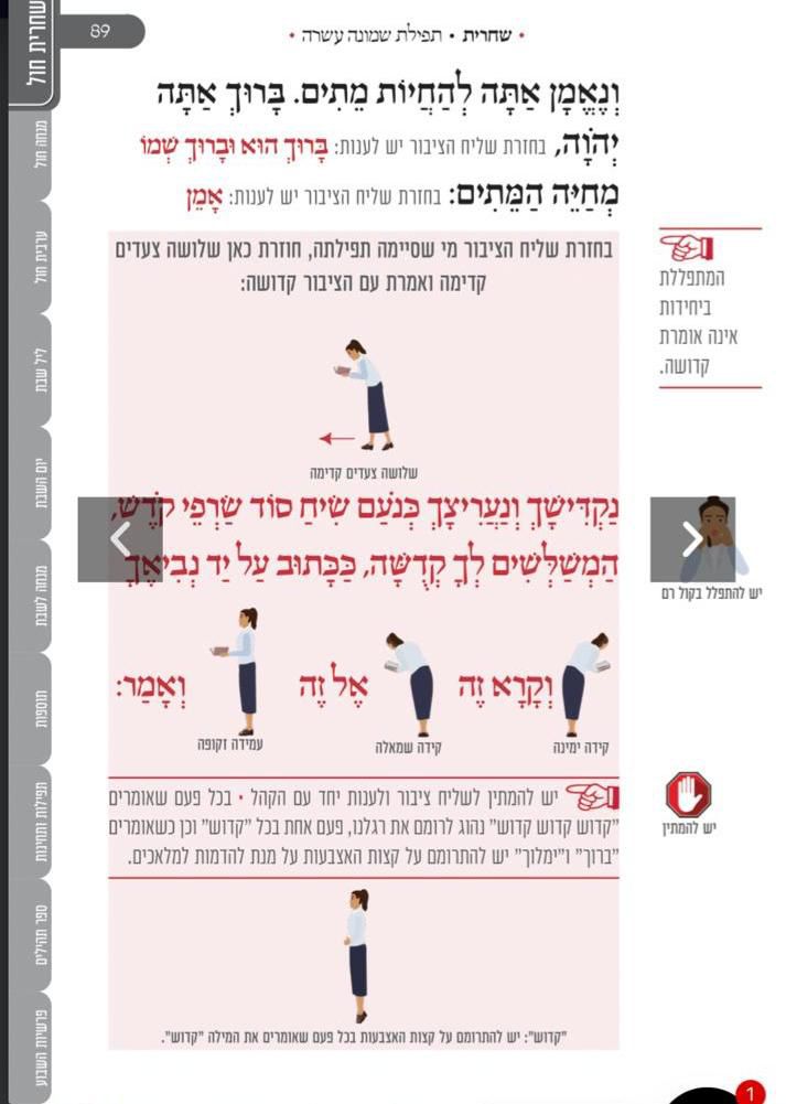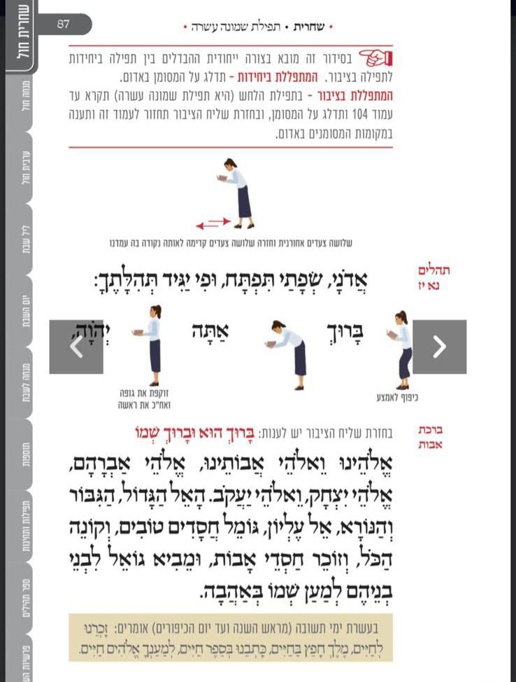 מלווה את המתפלל לאורך התפילה מסביר ומסמן איך להתפלל, מתי לשבת, מתי