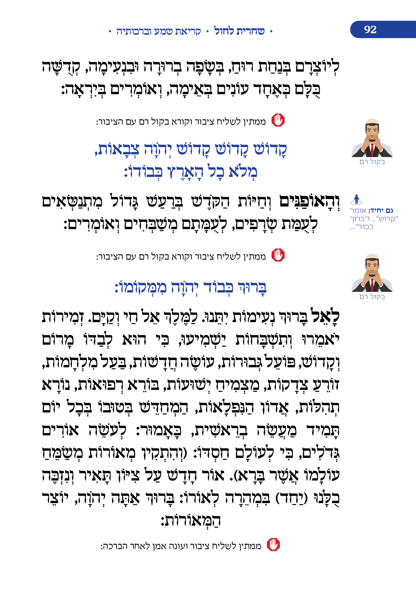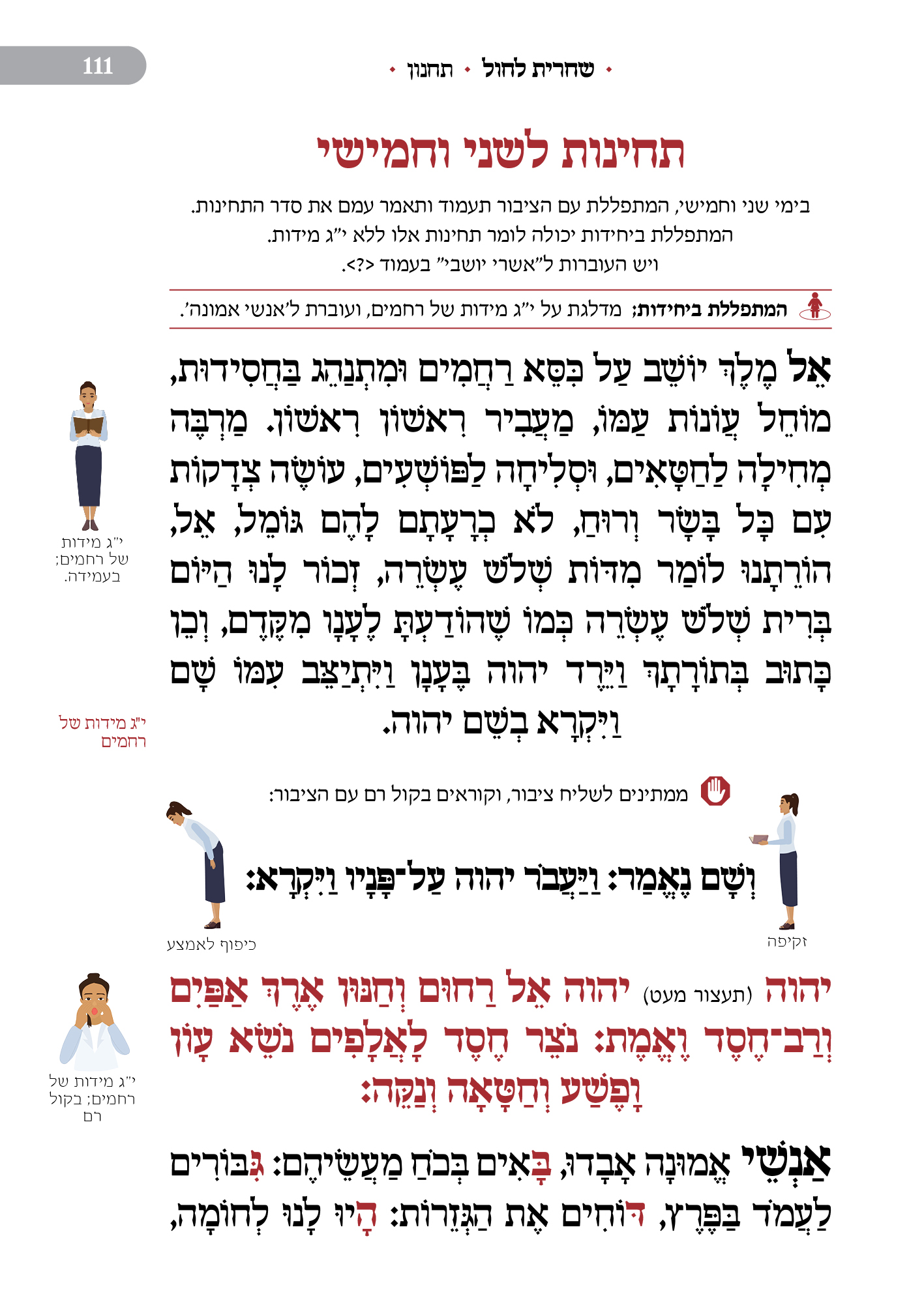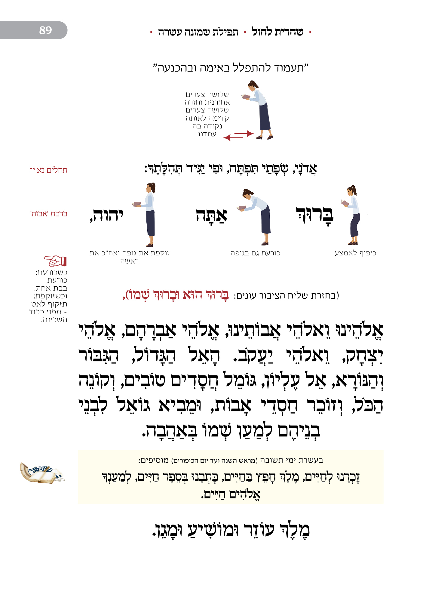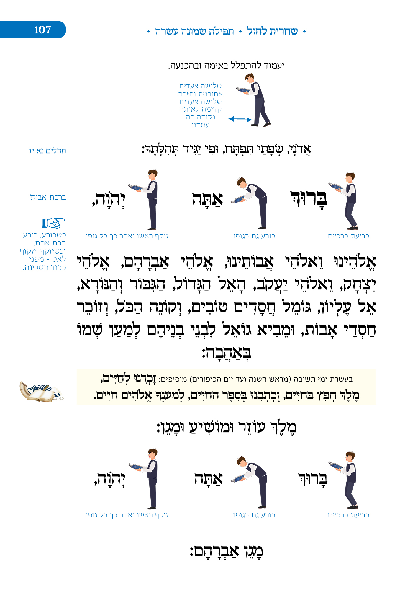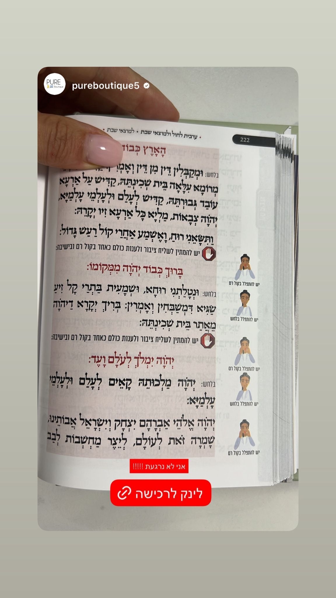 מלווה את המתפלל לאורך התפילה מסביר ומסמן איך להתפלל, מתי לשבת, מתי