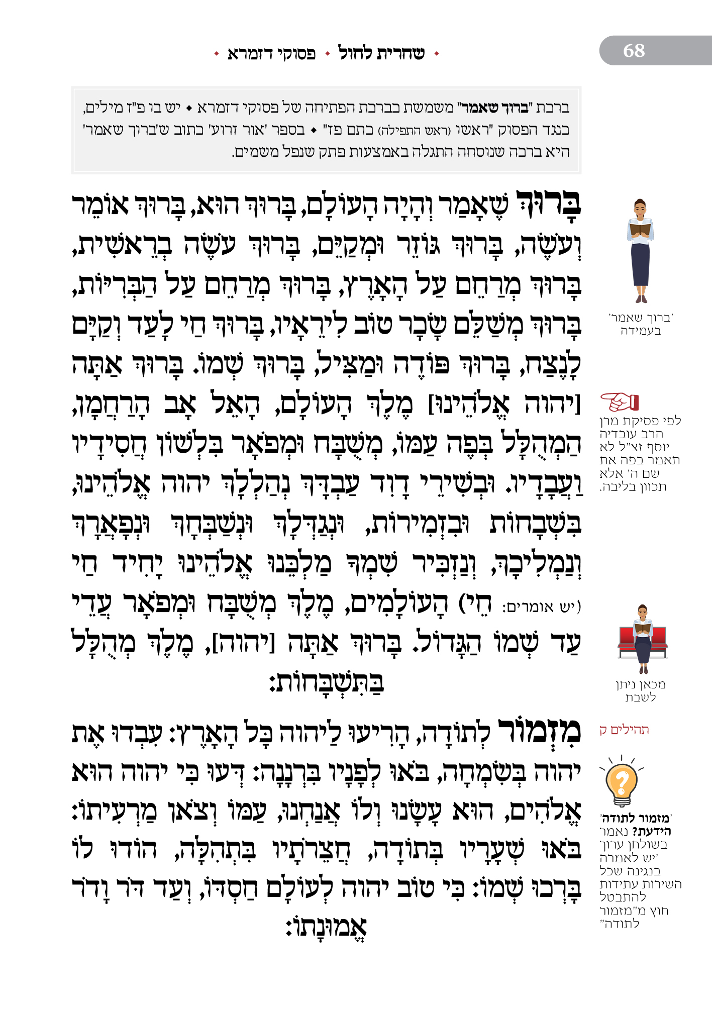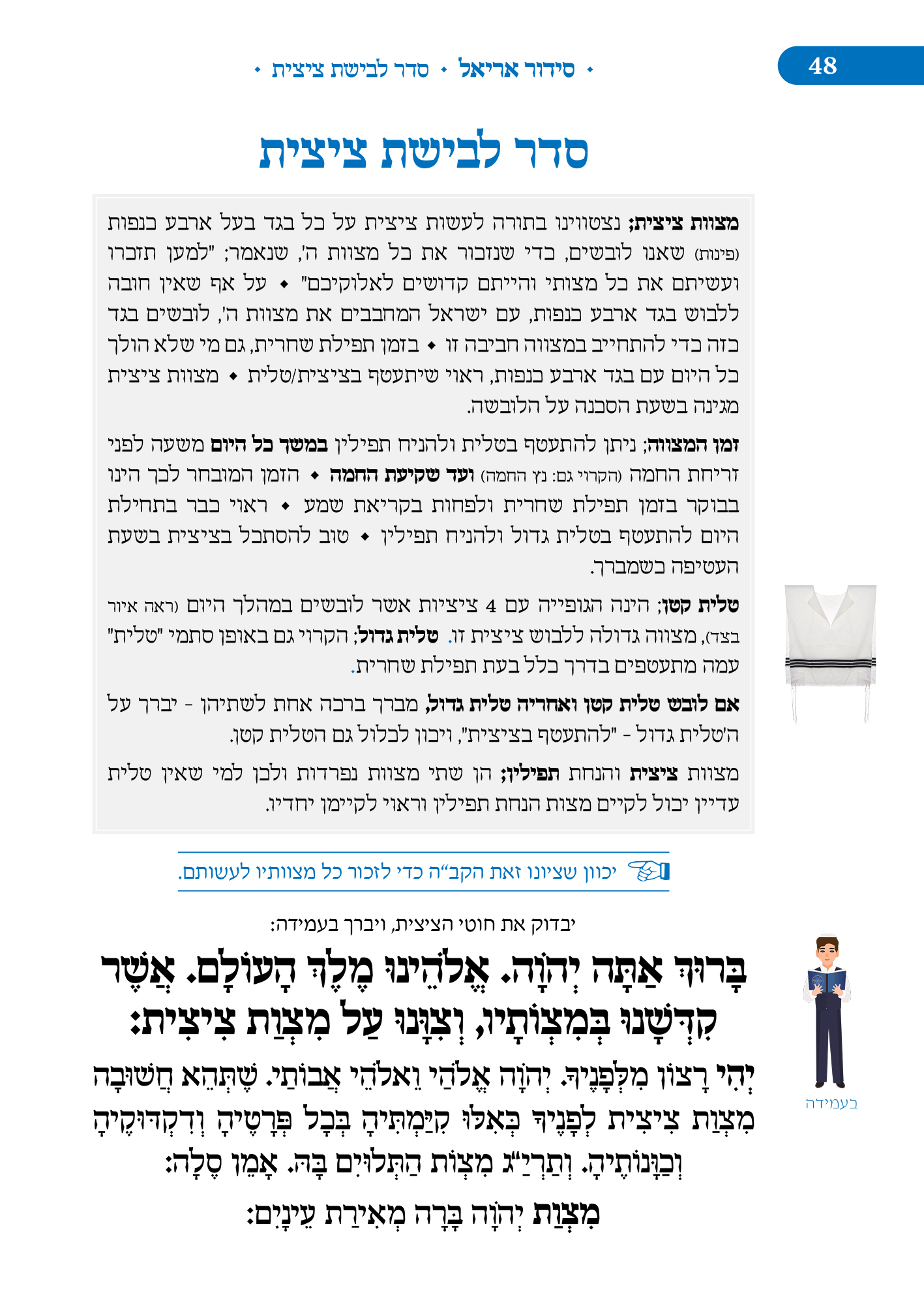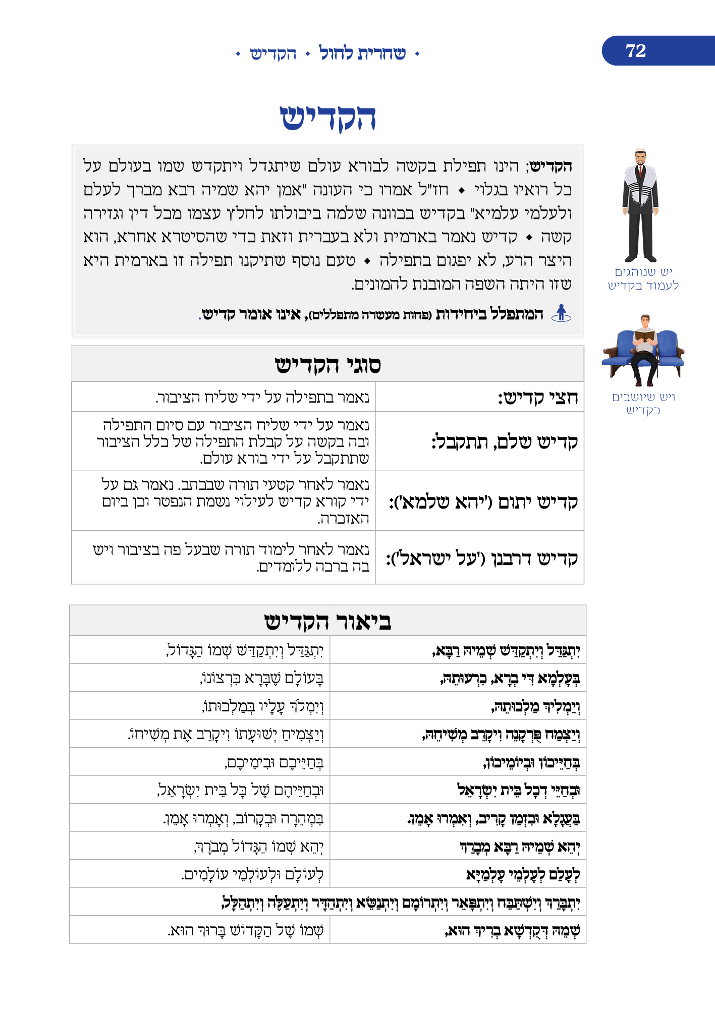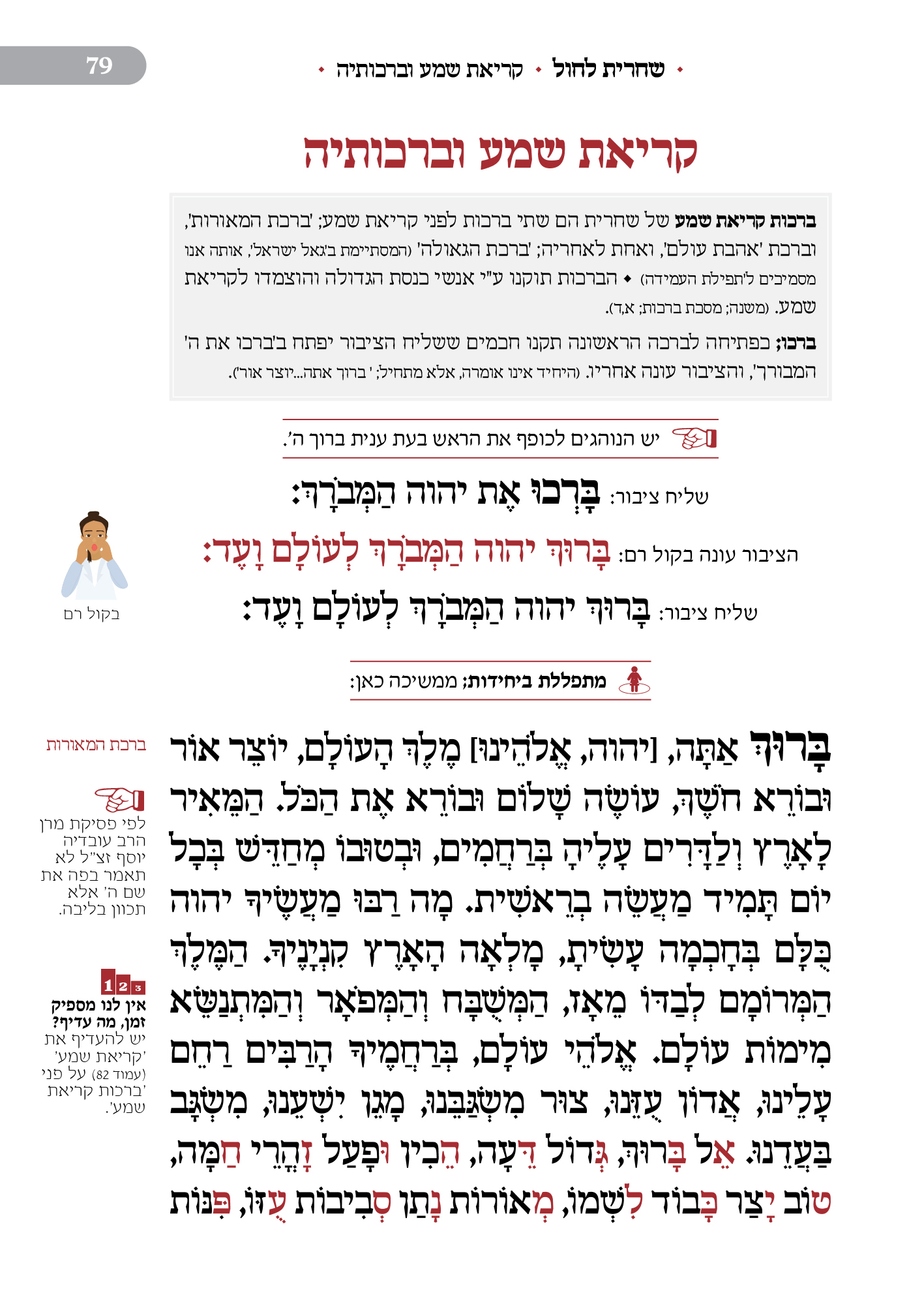 מלווה את המתפלל לאורך התפילה מסביר ומסמן איך להתפלל, מתי לשבת, מתי