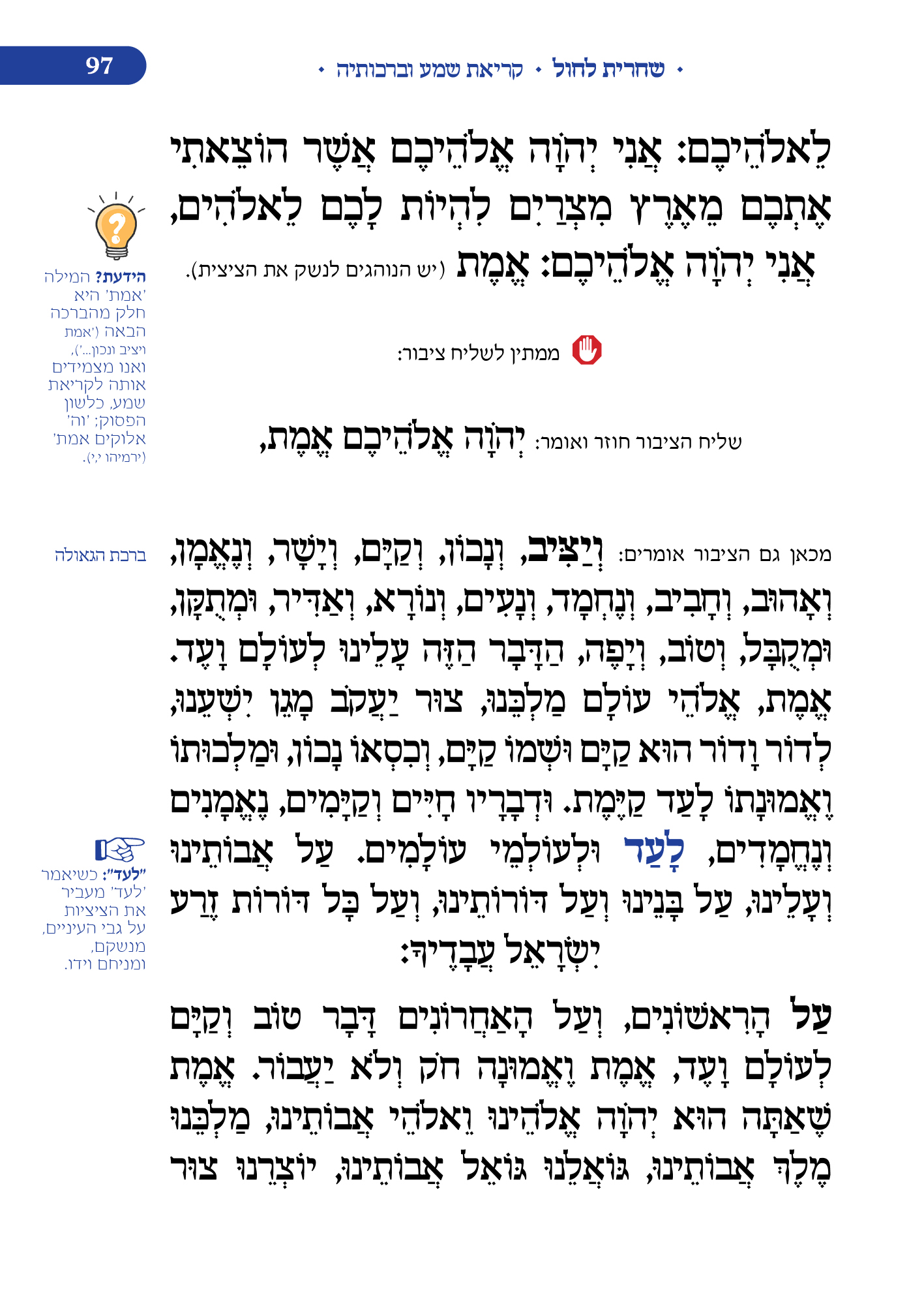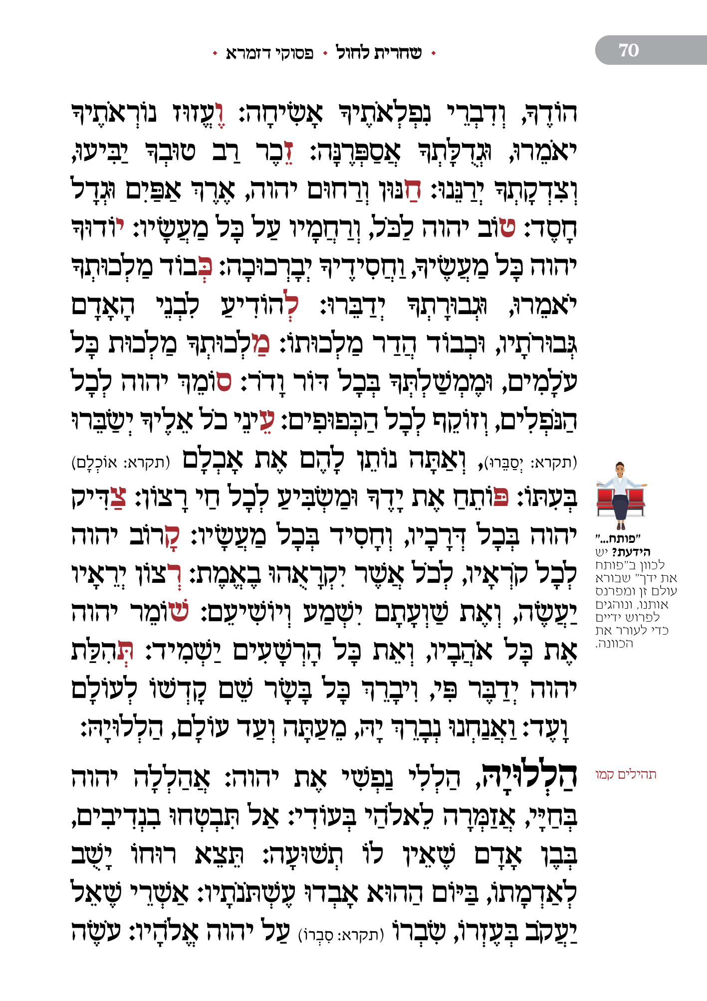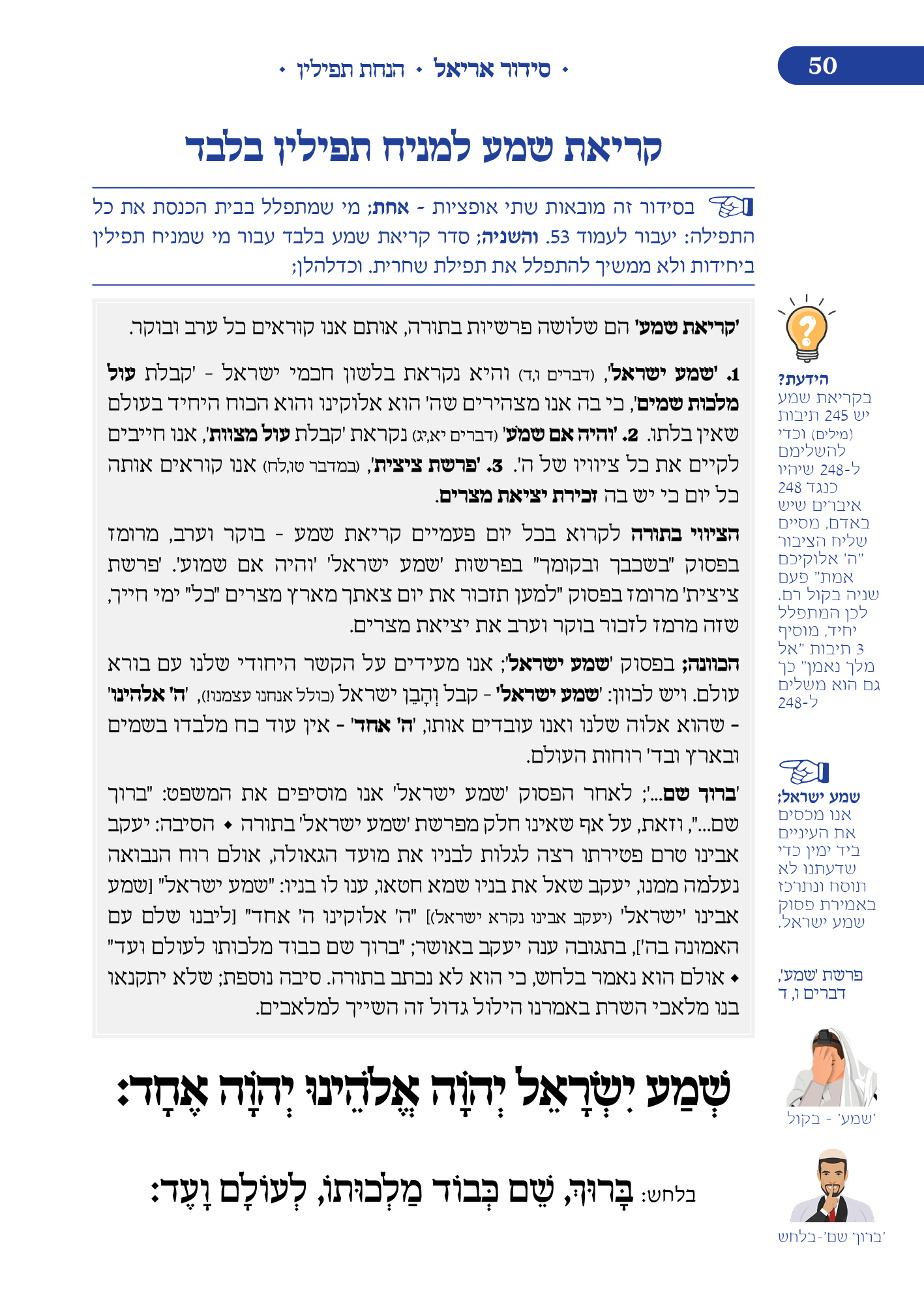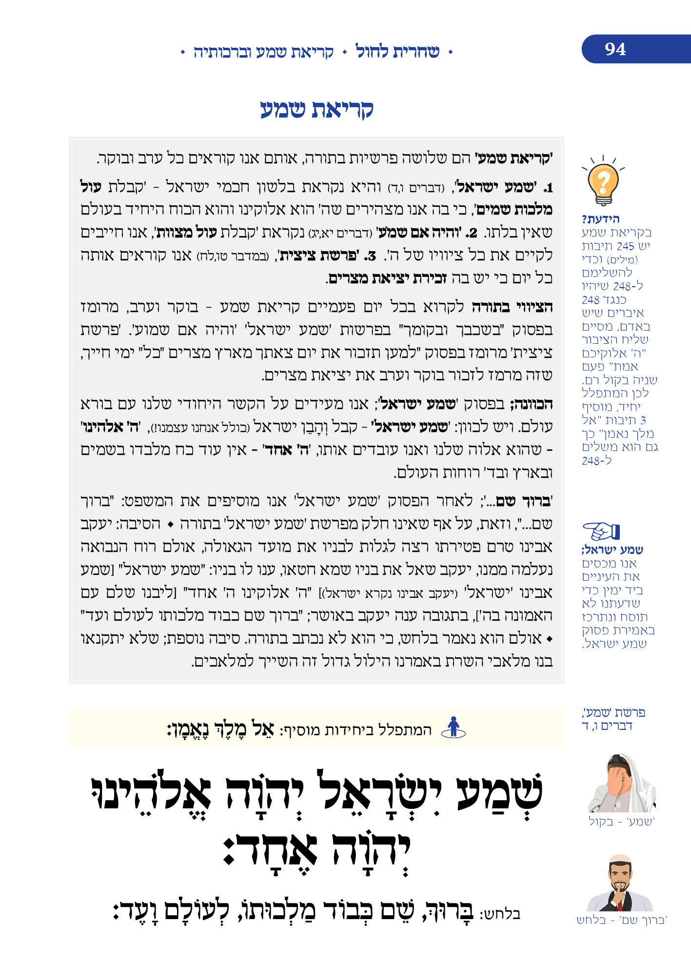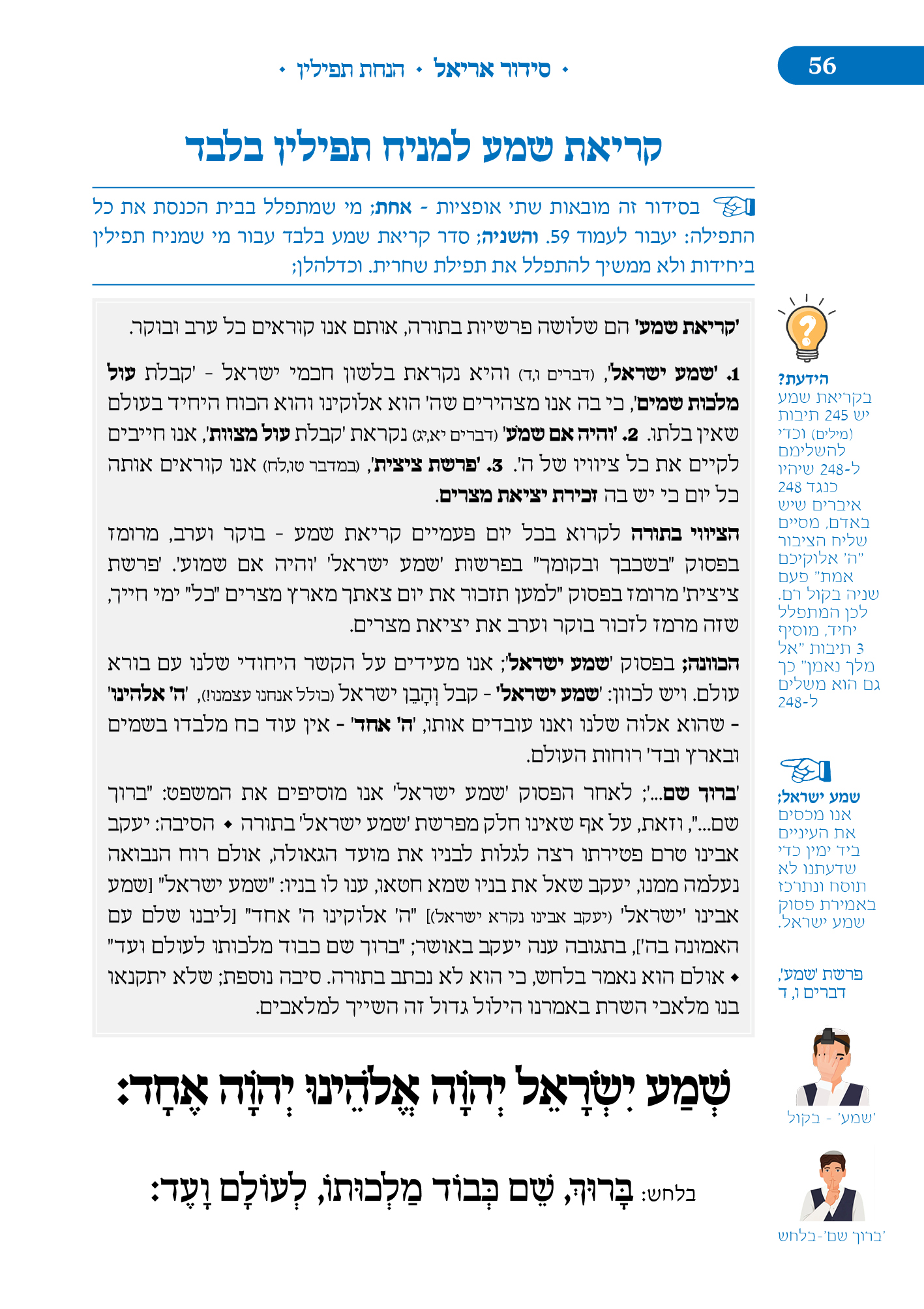 מלווה את המתפלל לאורך התפילה מסביר ומסמן איך להתפלל, מתי לשבת, מתי