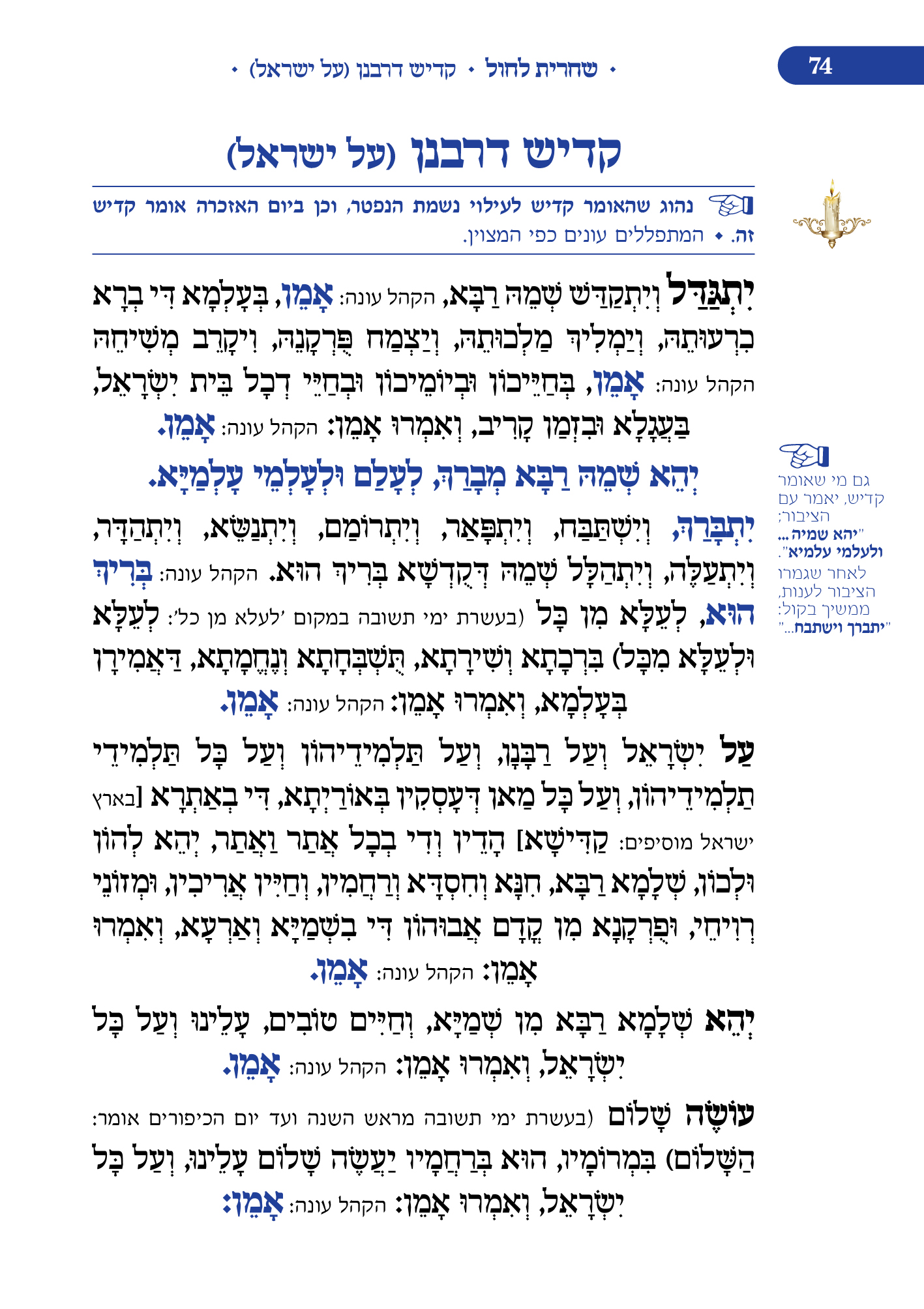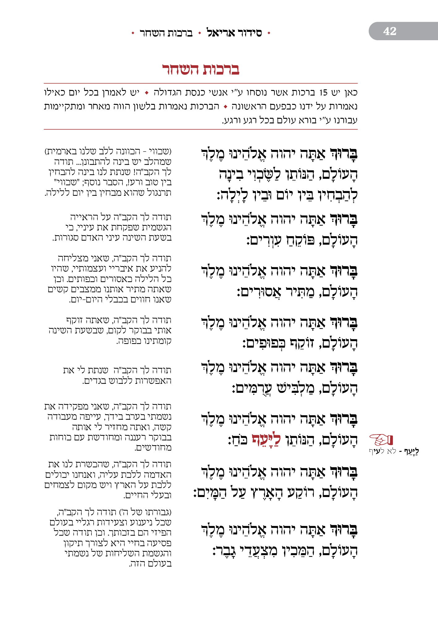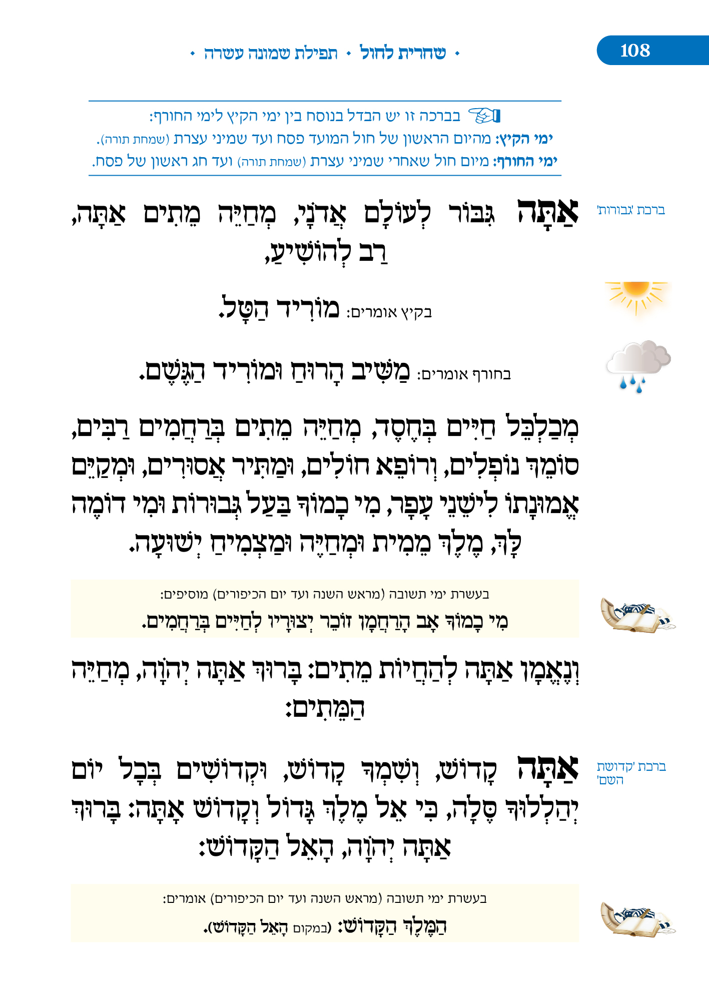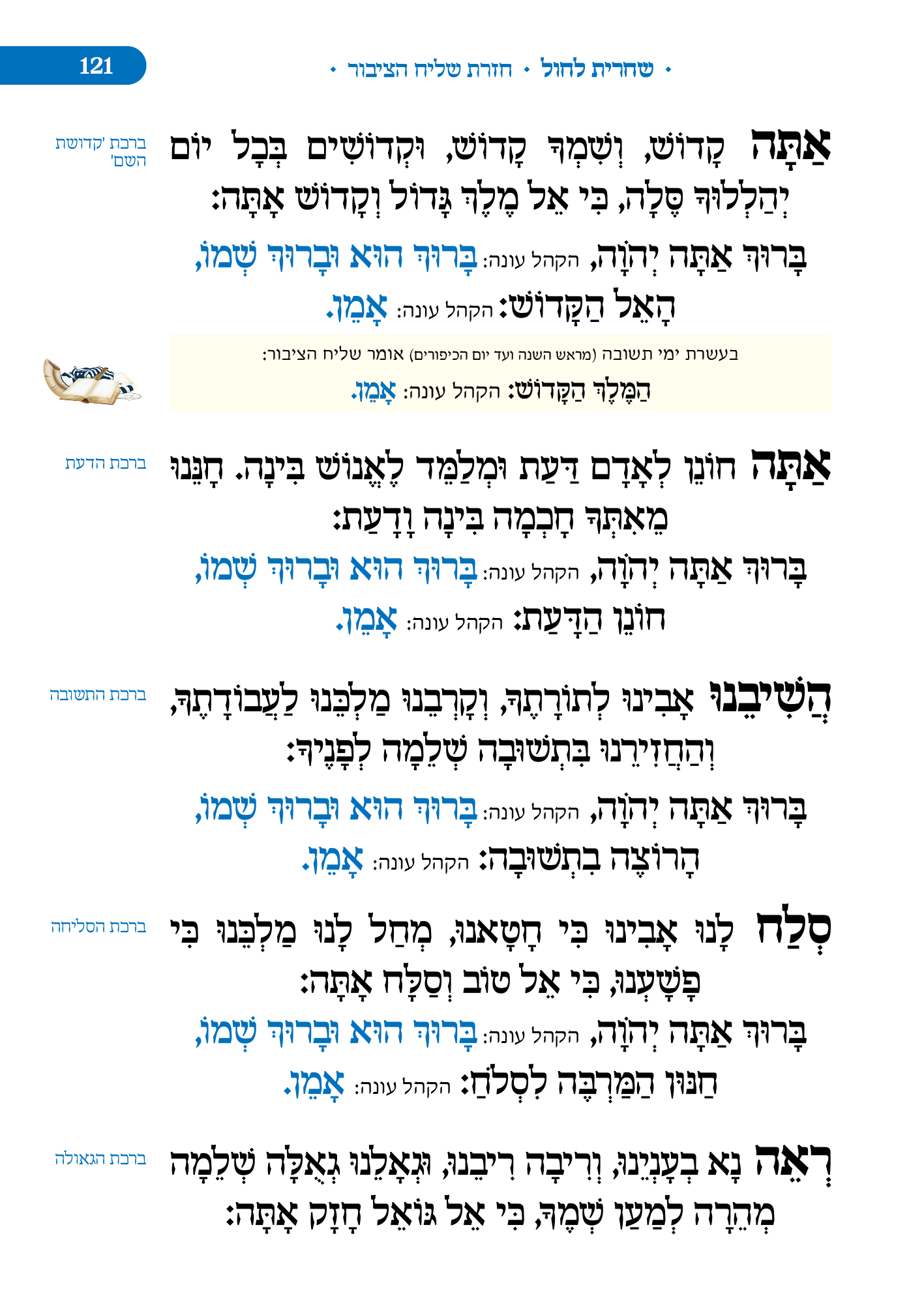 מלווה את המתפלל לאורך התפילה מסביר ומסמן איך להתפלל, מתי לשבת, מתי