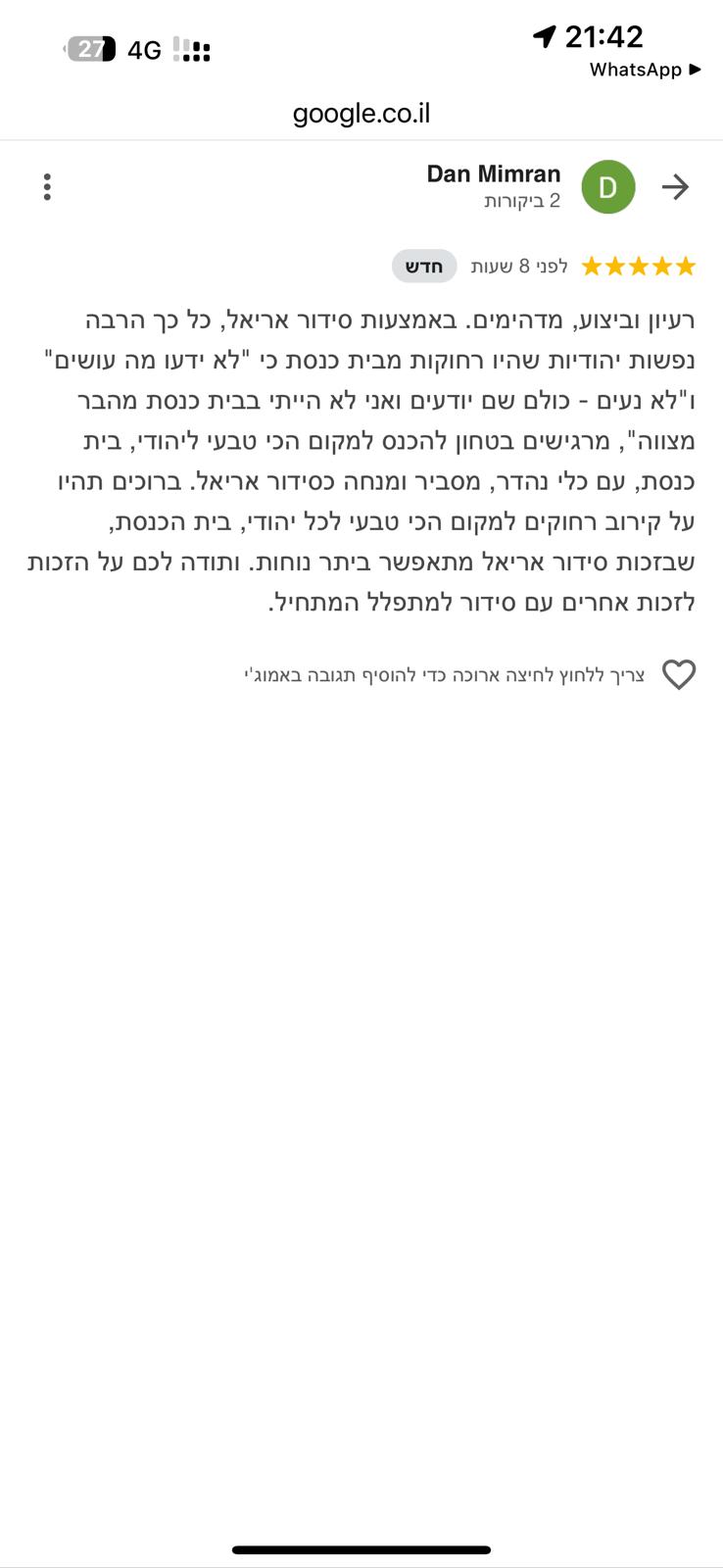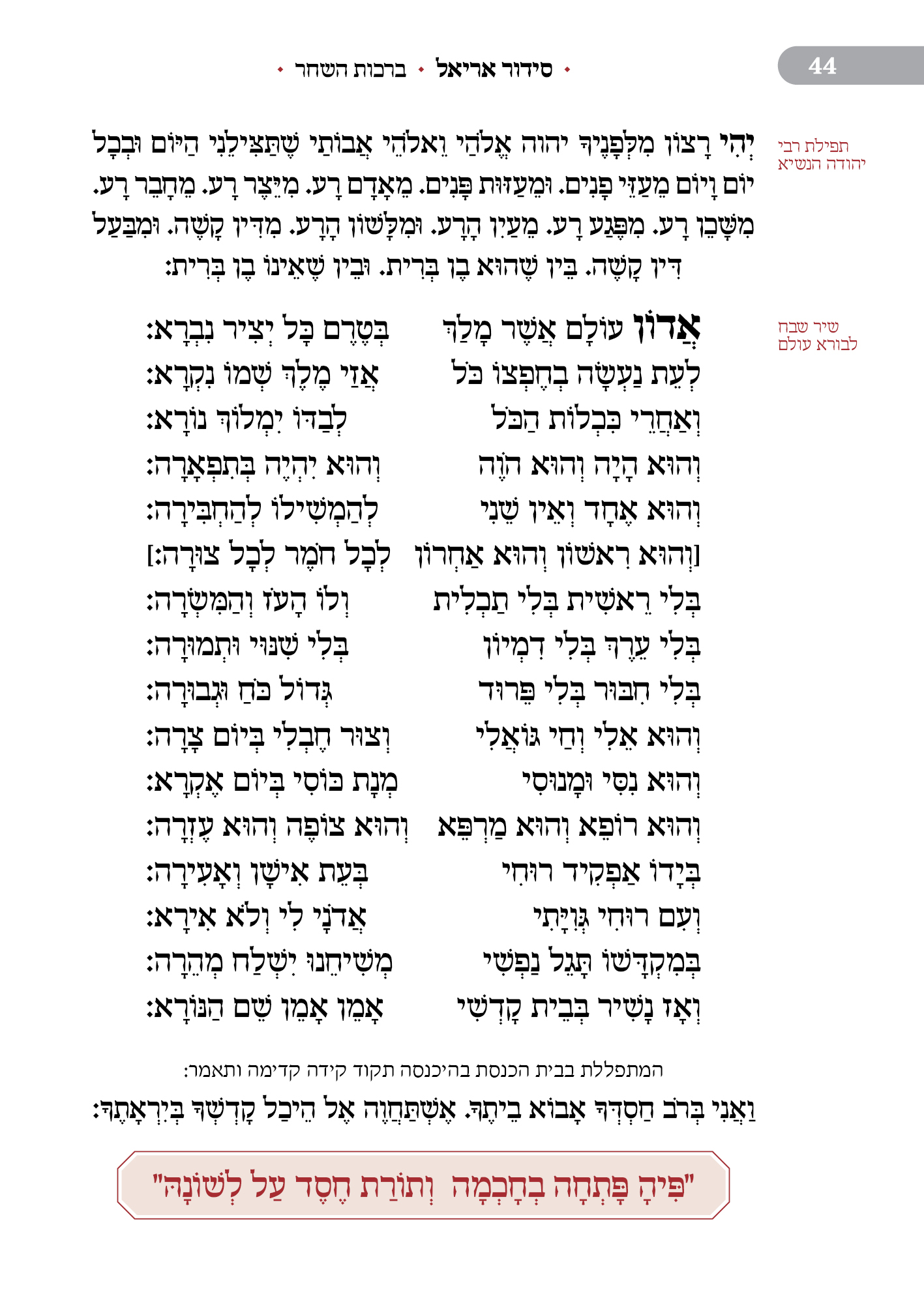 רבים מוצאים עצמם אבודים מול עולם התפילה היהודי בין אם בתפילה בציבור ובין אם ביחידות. על רקע זה של חוסר היכרות עם מרחב התפילה החלטתי לצאת יחדיו עם צוות מקצועי של עורכים, אנשי הלכה, גרפיקאים ואנשי תוכן אשר עמלים על יצירת סידור תפילה זה. סידור אריאל מלווה בהסברים נהירים ללא כל קשר לרקע הדתי ממנו מגיע המתפלל ועושה סדר בתפילה. הסידור מדריך את המתפלל בליווי איורים וסימנים בצורה בהירה מה עושים וכיצד מתנהלים בכל מהלך התפילה. הסידור נערך ונכתב במחשבה על מי שמרחב התפילה זר להם אך שייך גם לו. יחד עם זאת כל מתפלל באשר הוא ימצא את מקומו. כולנו תפילה שיחדיו הצלחנו